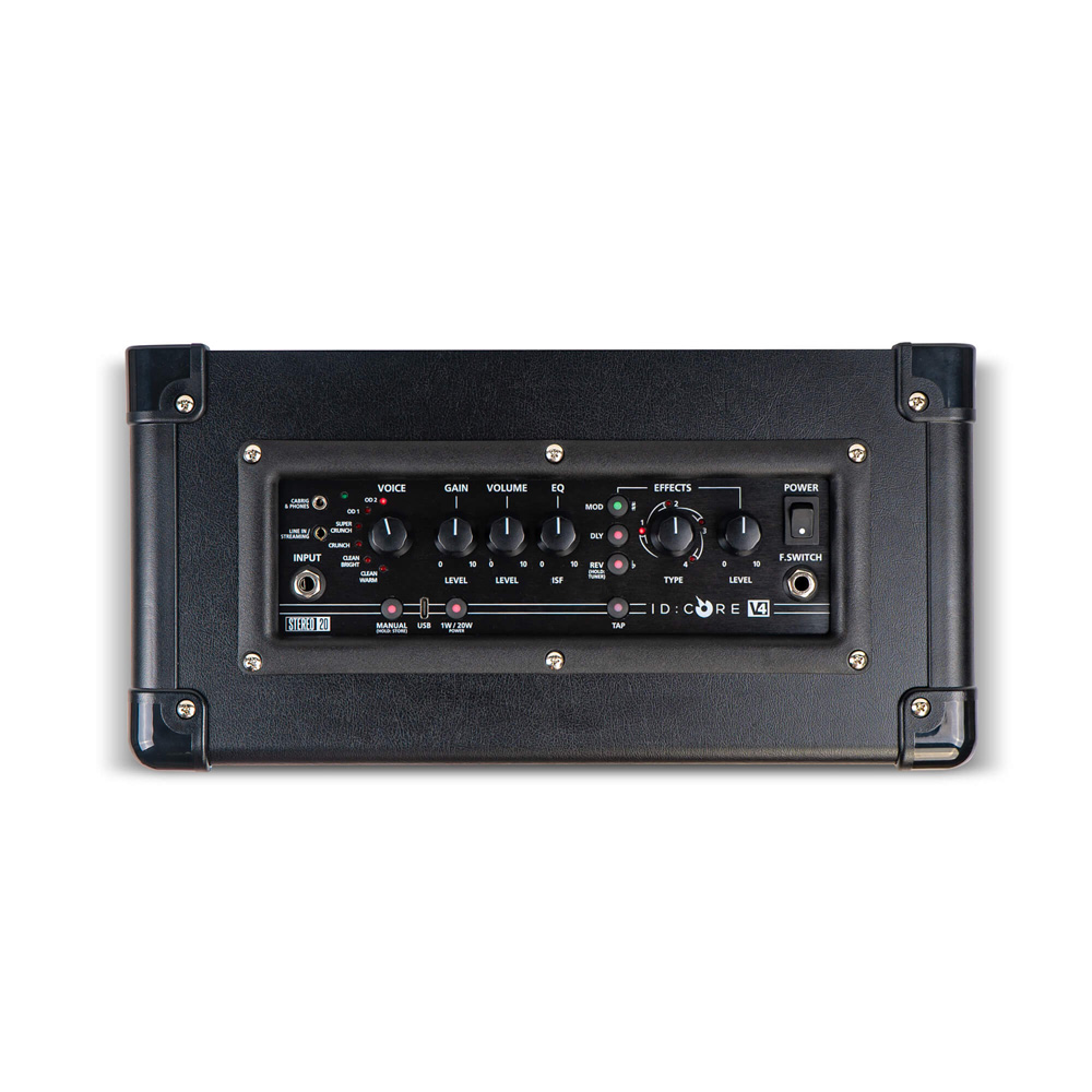 Ampli Blackstar ID:CORE V4 Stereo 20 có sẵn 6 kiểu Amp kết hợp cùng 12 effect chất lượng cao, giúp người chơi guitar dễ dàng kết hợp nhằm sáng tạo ra bộ tiếng riêng biệt, lưu trữ preset trước cho phần trình diễn. Công tắc gạt ISF danh tiếng của hãng, giúp người chơi lựa chọn hệ tiếng Anh - Mỹ tùy theo sở thích, rất thú vị.