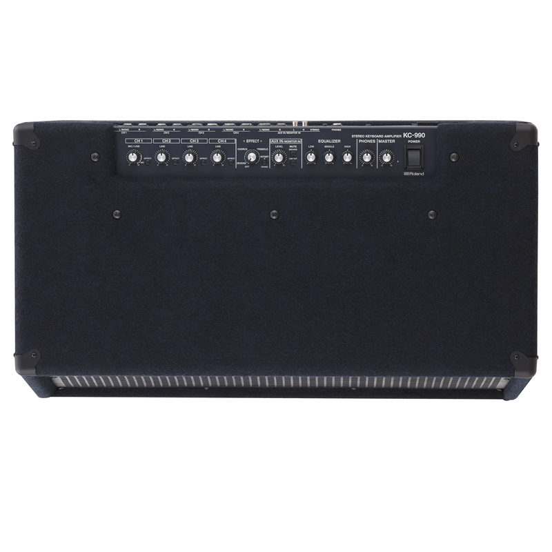 Model Ampli Roland KC-990 cao cấp nhất trong dòng sản phẩm ampli đa năng của hãng, cung cấp công suất đầu ra 320W Stereo mạnh mẽ, phục vụ tốt cho một band nhạc hoặc keyboard trình diễn trên sân khấu lớn. Ampli KC-990 có sẵn 4 channel để người dùng kết nối thêm các loại nhạc cụ: trống điện, piano điện hay guitar... đặc biệt loa KC-990 còn được tích hợp sẵn effect nhiều chế độ cho giọng hát hoặc nhạc cụ, để người dùng sử dụng linh hoạt khi cần.