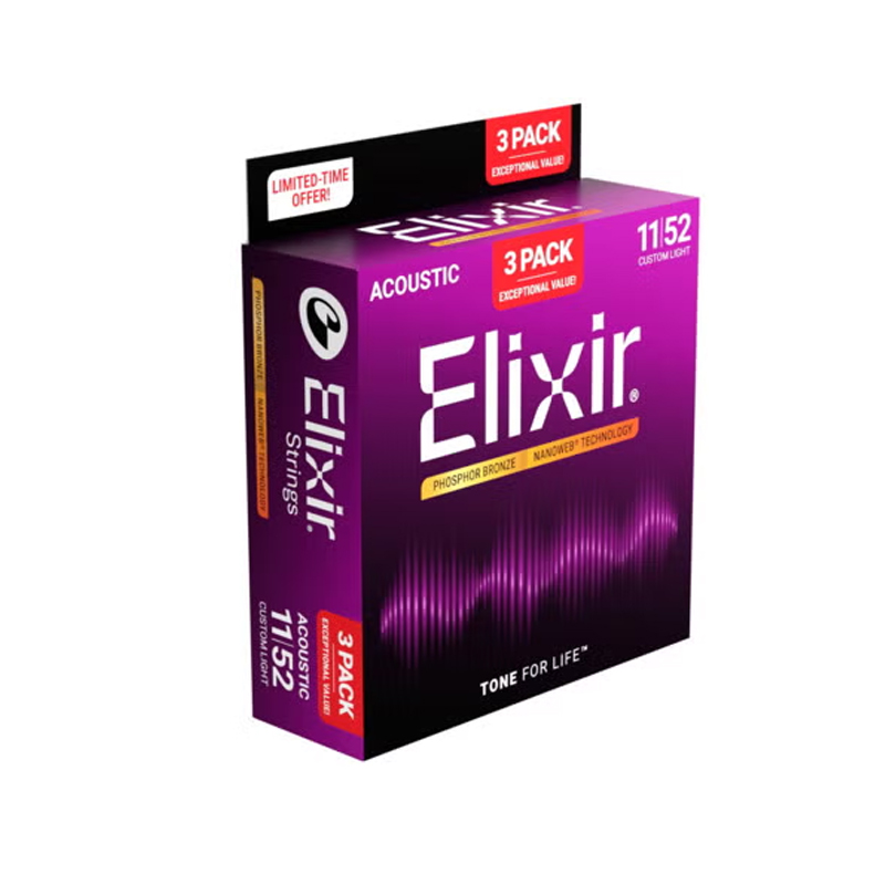 Model Elixir 16568 đóng gói gồm 3 bộ Elixir 16027 - "huyền thoại" của hãng với size dây 11-52 phù hợp cho cả nam và nữ chơi guitar acoustic, và bán chạy toàn thế giới. Việc lựa chọn mua Pack 3 bộ giúp tiết kiệm lên tới 300.000đ so với việc mua lẻ từng bộ, phù hợp với các guitarist, bạn trẻ chơi band nhạc...thường xuyên thay dây đàn, hoặc thay theo nhóm sinh viên, câu lạc bộ guitar...
