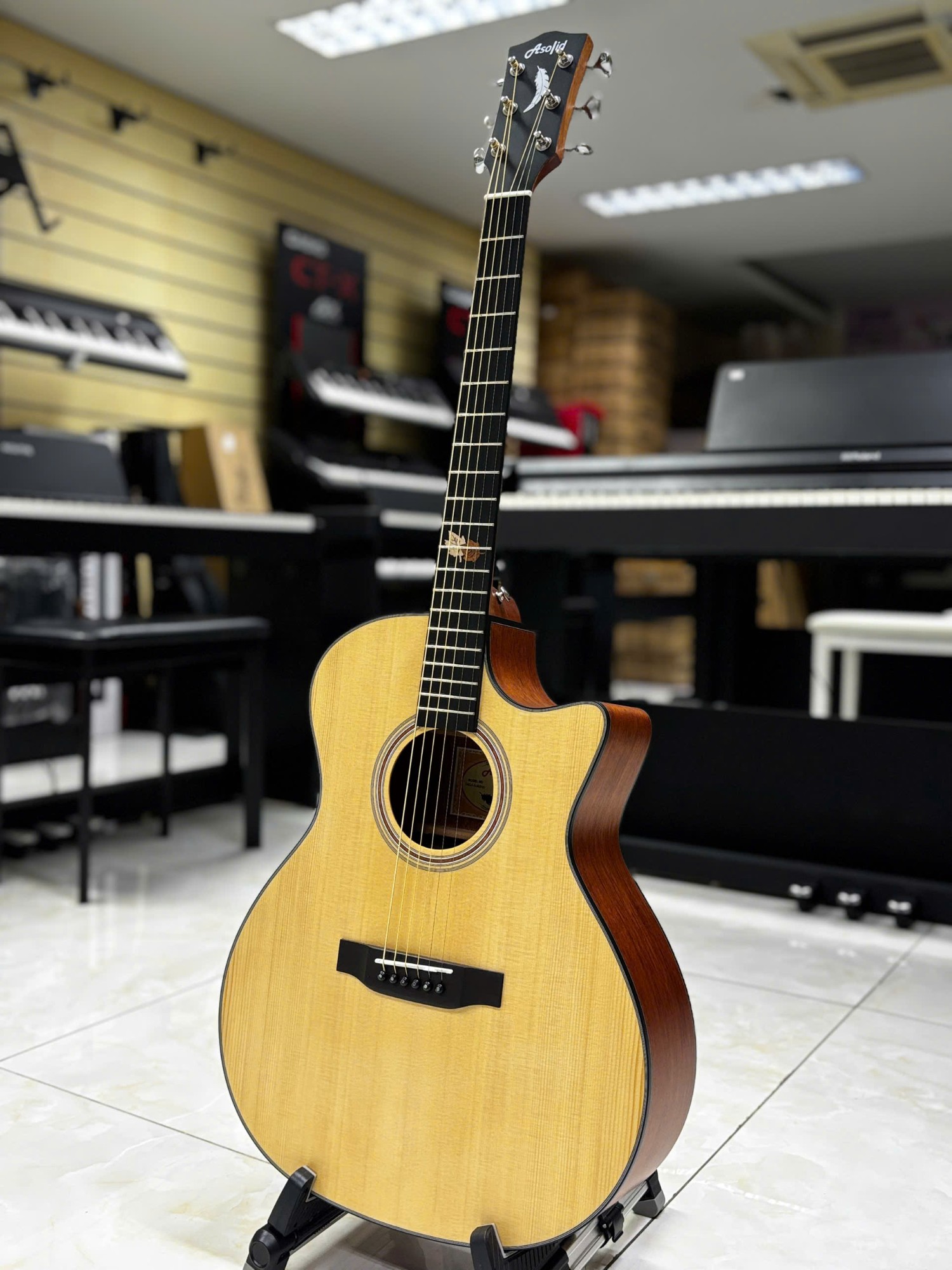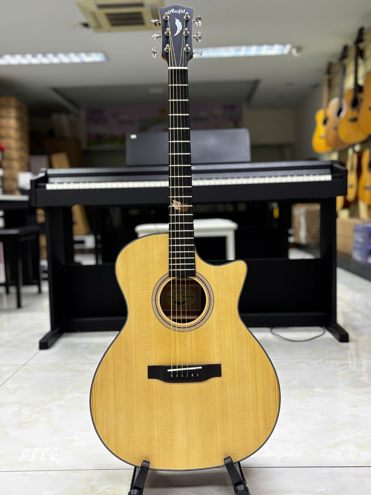 Asolid 54GA Solid Top là mẫu guitar acoustic nổi bật trong phân khúc phổ thông với chất lượng hoàn thiện cao. Sở hữu mặt top gỗ nguyên tấm, cây đàn mang đến âm thanh vang, rõ và có độ phản hồi tốt, phù hợp cho cả người mới bắt đầu lẫn người chơi lâu dài.