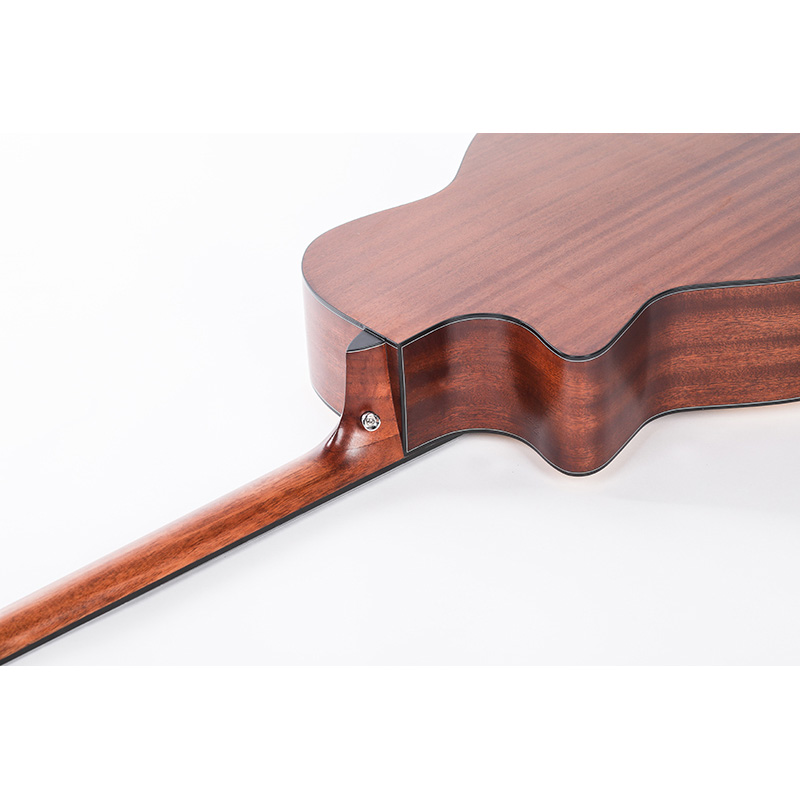 Phần lưng và hông của đàn được làm từ gỗ Mahogany, mang lại âm thanh ấm áp, dày và cân bằng – rất lý tưởng cho việc đệm hát hoặc chơi solo mộc. Bên cạnh đó, mặt phím Black Richlite – một vật liệu tổng hợp cao cấp – không chỉ có độ bền vượt trội, chống cong vênh mà còn mang lại cảm giác chơi mượt mà tương đương với gỗ mun truyền thống, giúp người chơi yên tâm sử dụng lâu dài.