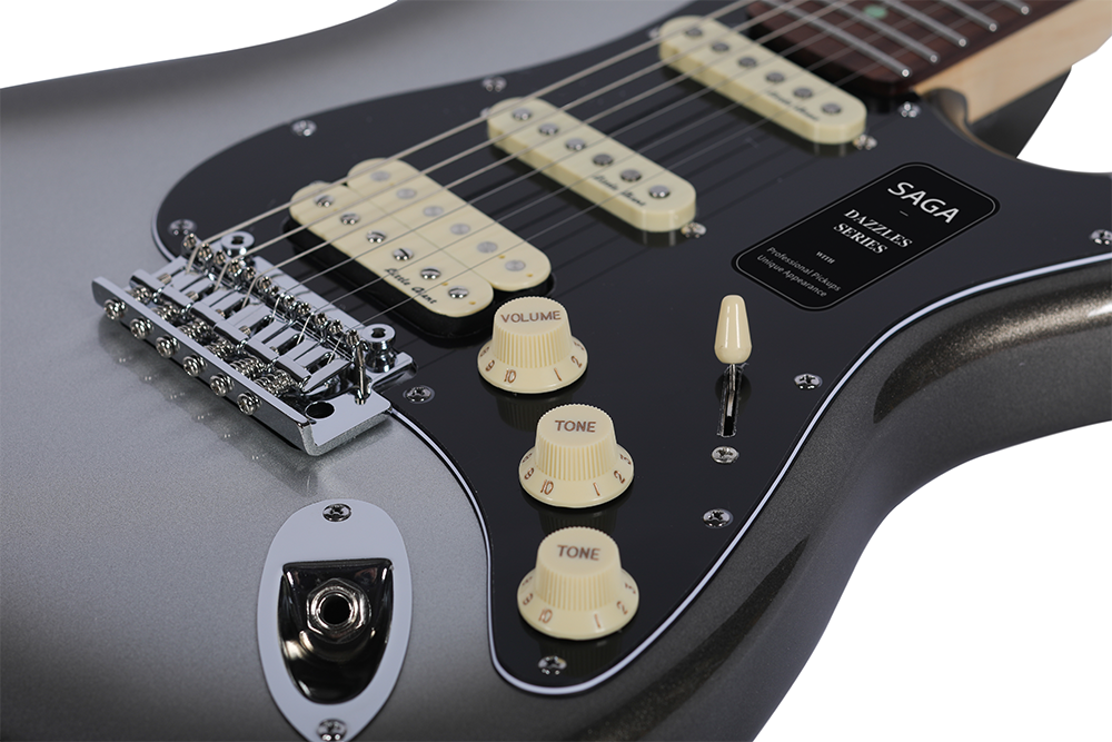 Mang màu xám kim loại Guitar điện Saga Mercury Gray cá tính và hiện đại, mẫu đàn ST mới nhất của SAGA là lựa chọn hoàn hảo cho những ai yêu thích sự tối giản nhưng vẫn muốn nổi bật trên sân khấu. Lớp sơn Metallic lấp lánh, giúp cây đàn thêm phần sang trọng, đồng thời tôn lên từng đường nét thiết kế thanh thoát.