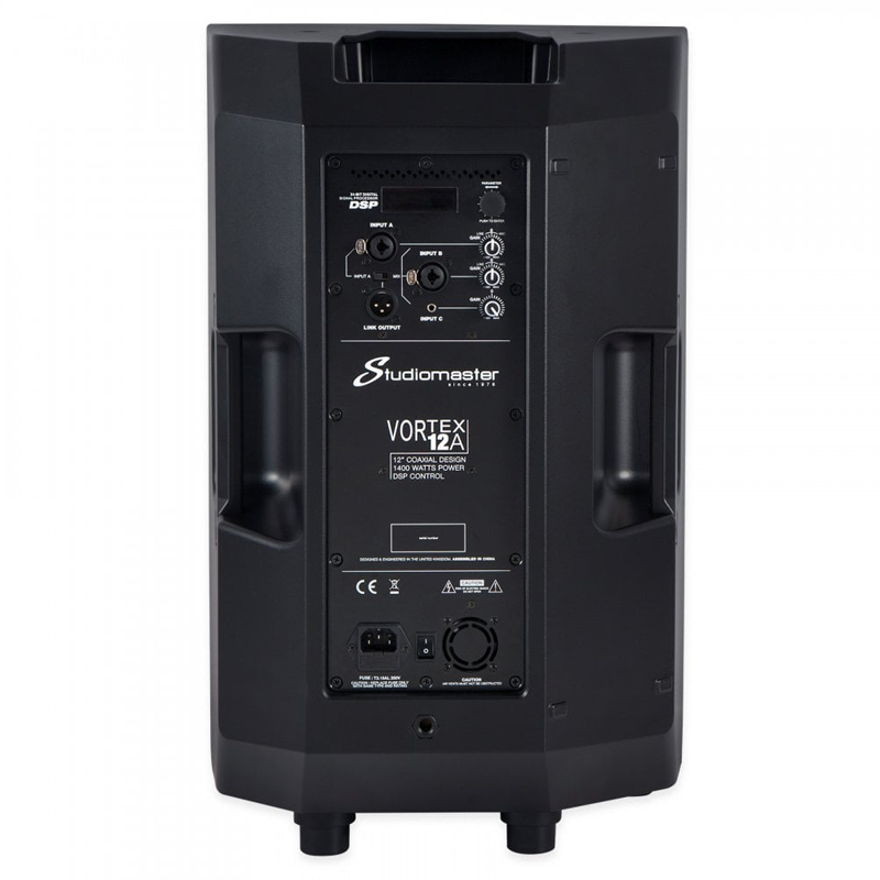 Studiomaster Vortex 12A được tích hợp mạch DSP thiết kế bởi kĩ sư hãng: có sẵn 5 modes lựa chọn theo nhu cầu sử dụng: music/live/dj/speech/monitor, cân chỉnh EQ 3 band và setup delay dễ dàng, giúp khai thác tối đa hiệu quả của loa. Người dùng có thể kết hợp cùng loa sub Vortex 18SA để tăng thêm khả năng trình diễn ngoài trời hoặc các chương trình biểu diễn band nhạc có trống điện hoặc trống jazz.