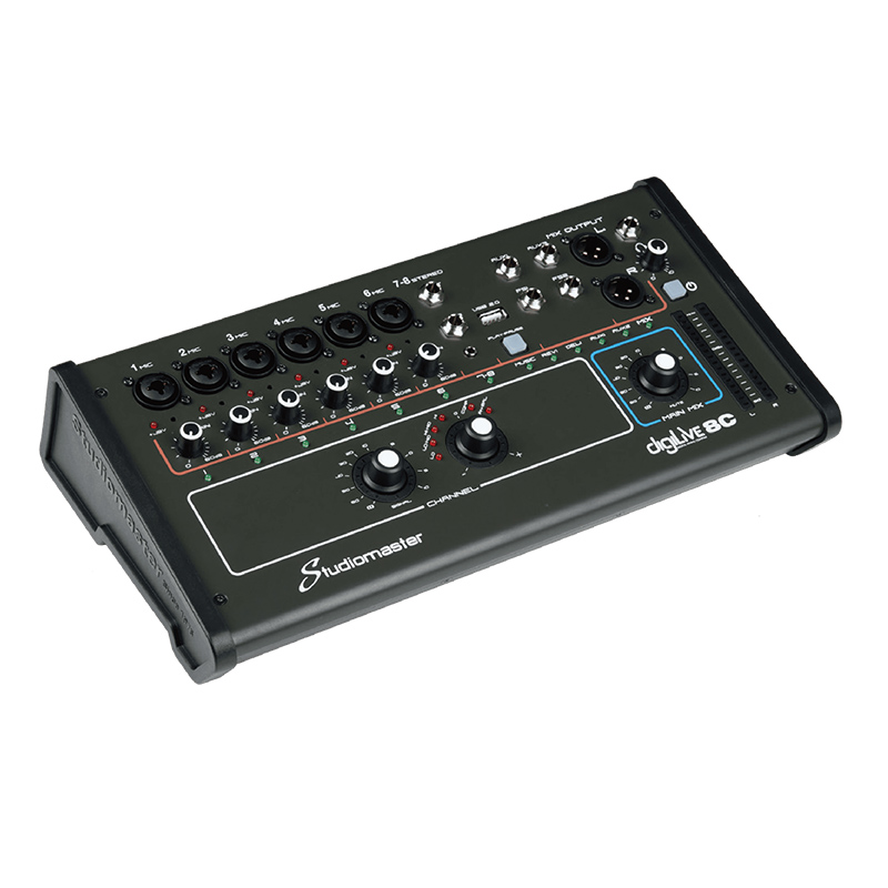Model bàn trộn kỹ thuật số Studiomaster Digilive 8C thiết kế gồm 6 microphone + 1 stereo input, sử dụng cho các nhu cầu cá nhân: Giải trí karaoke gia đình, hát với nhạc cụ hay nhà nguyện, nhà chùa, các phòng họp nhỏ... giúp xử lý tín hiệu chất lượng cao, hiệu chỉnh dễ dàng và mang lại hiệu suất âm thanh tối ưu cho bộ dàn.