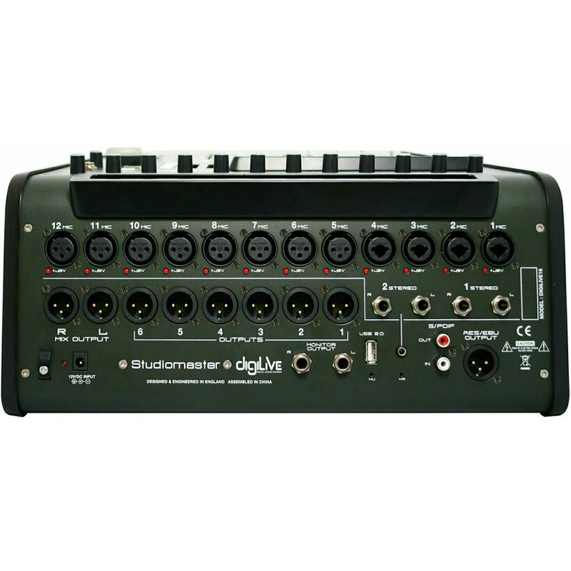 Mixer số Studiomaster Digilive 16 có thiết kế nhỏ gọn, bao gồm 12 microphone inputs XLR + 2 ngõ Stereo sử dụng jack TRS, cho giao diện điều khiển trực quan. Đặc biệt màn hình cảm ứng 7-inch thiết kế sẵn trên mixer thể hiện chi tiết thông số cho phép kỹ thuật viên can thiệp nhanh chóng và tiện lợi, qua đó khai thác mixer được hiệu quả tối ưu. Cũng như các mixer kỹ thuật số khác, người dùng có thể điều khiển Digilive 16 từ xa qua Wi-Fi bằng iPad dễ dàng.