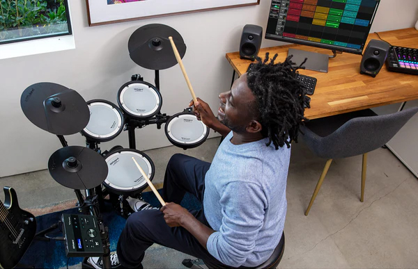 Bộ trống điện tử Roland TD-07KV sở hữu cấu hình rất hấp dẫn với một module âm thanh mạnh mẽ và hệ thống pad được thiết kế để tối ưu cảm giác chơi. Thiết kế giúp kit vừa vặn trong phòng ở, phòng thu nhỏ hoặc không gian biểu diễn di động mà vẫn giữ trải nghiệm biểu cảm và động lực tương tự trống acoustic.