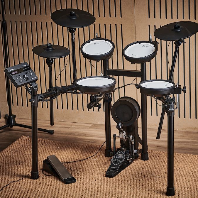 Mặt lưới (mesh) của snare và tom giúp giảm tiếng so với trống cao su, trong khi pad chân & rack cũng được thiết kế để giảm rung / tiếng truyền xuống sàn.