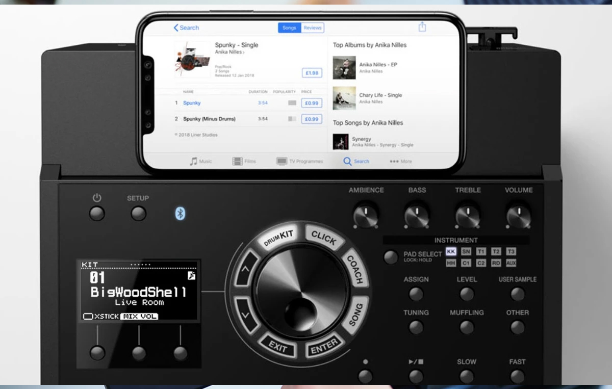 Trống điện tử Roland TD-17KV2 cung cấp hỗ trợ Bluetooth cho bạn. Bạn có thể phát bài hát yêu thích từ điện thoại thông minh đến trống và nghe toàn bộ qua tai nghe. Bạn còn có thể thu lại bài chơi và lắng nghe lại để tìm ra những điểm cần cải thiện và học tập từ những lần đánh sai.